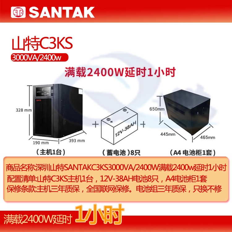 青鹏科技ups电源设备西安地区山特UPS电源C10K,C6K,C3K,C2K,C1K标机分别内置16只17AH蓄电池,8只17AH蓄电池,6只17AH蓄电池,3只17AH蓄电池,2只17AH蓄电池,如果需要更长断电时间需要选购山特UPS电源C10KS,C6KS,C3KS,C2KS,C1KS长效机器后备时间15分钟以上的请联系西安ups电源设备销售C10KUPS电源不间断系列产品咨询配置方案。